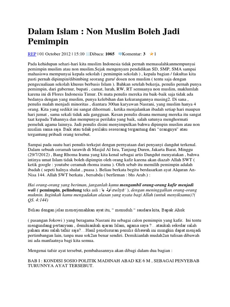 Dalam Islam Non Muslim Boleh Jadi Pemimpin