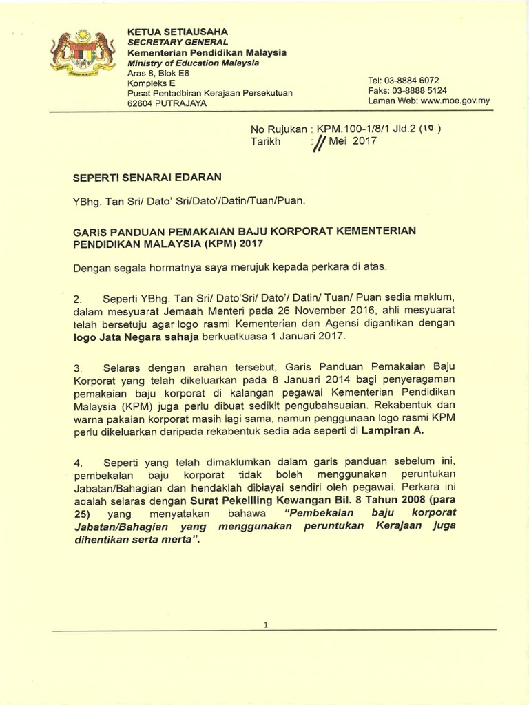Https Www Moe Gov My Pekeliling 3626 Garis Panduan Pemakaian Baju Korporat Kpm 2020 File