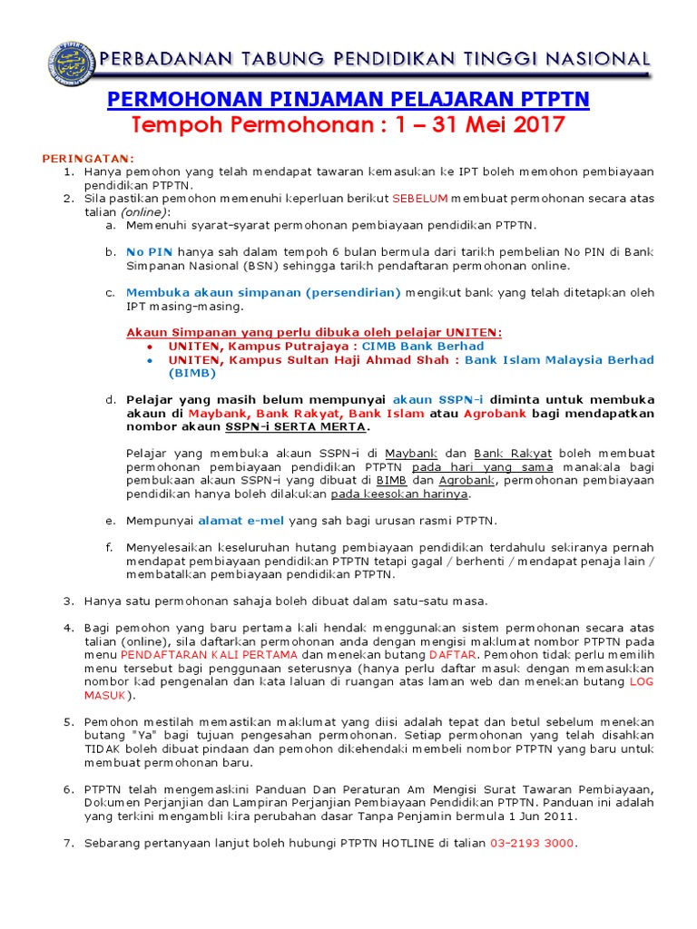 Ptptn Education Loan May 2017 Intake