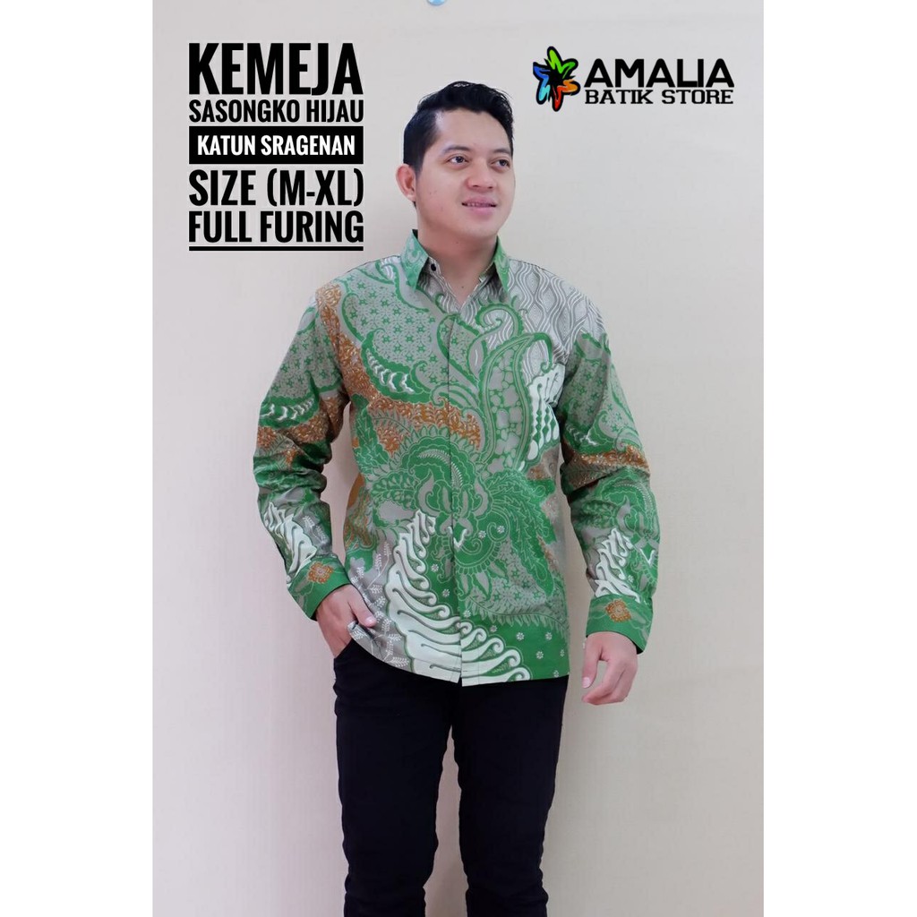 Sasongko Green Batik Shirt Men Top Batik Clothes Men Long Sleeve Modern Batik By Amalia Shopee Malaysia