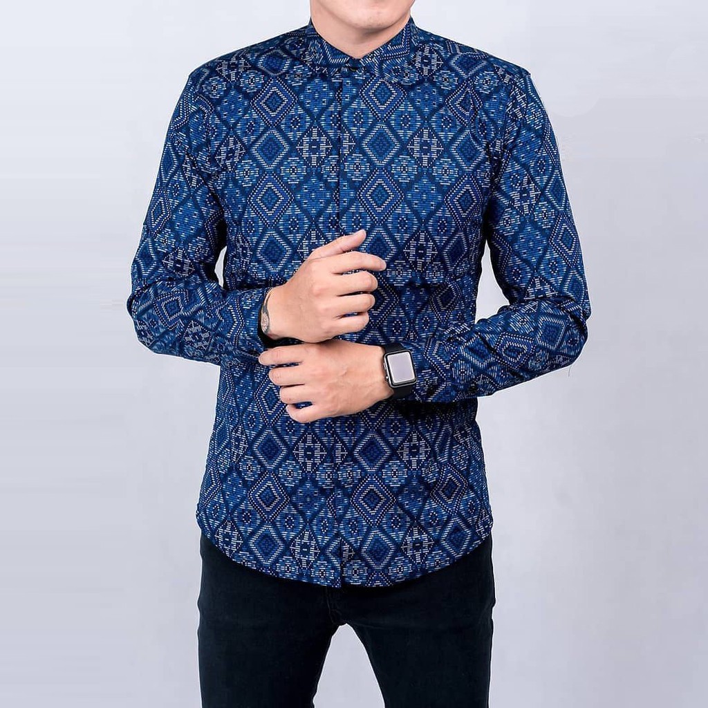 Batik Shirt Men S Batik Shirt Songket Diamond Modern Slimfit Casual Blue Shopee Malaysia