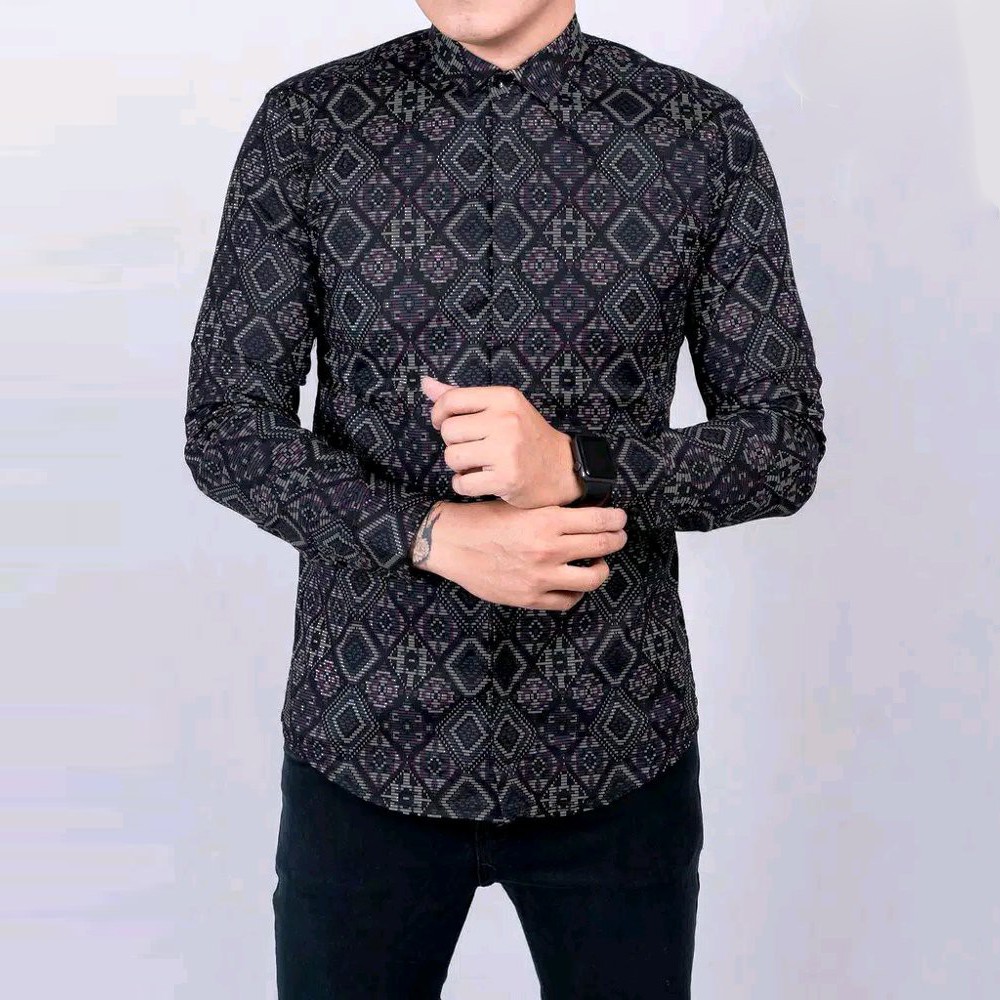 Mulawarman Batik Shirt Men Top Batik Clothes Batik Men Long Sleeve Modern Batik By Ukail Shopee Malaysia