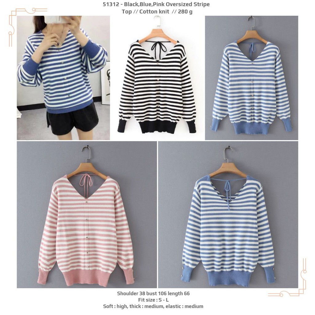 51312 Black Blue Pink Oversized Stripe Top Shopee Indonesia