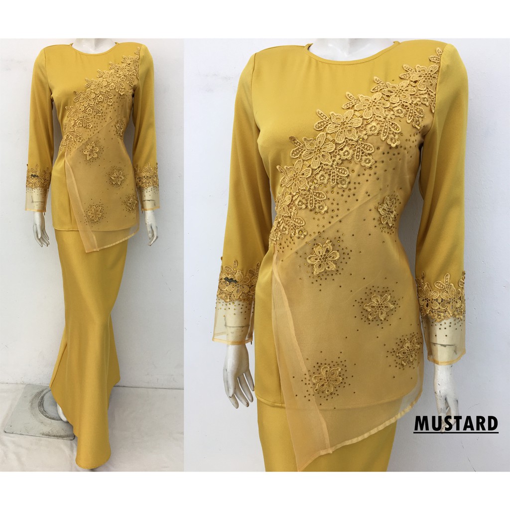 Raya 2020 Baju Kebaya Nanako Woth Gold Lace Trim And Organza Layered Skirt Lazada