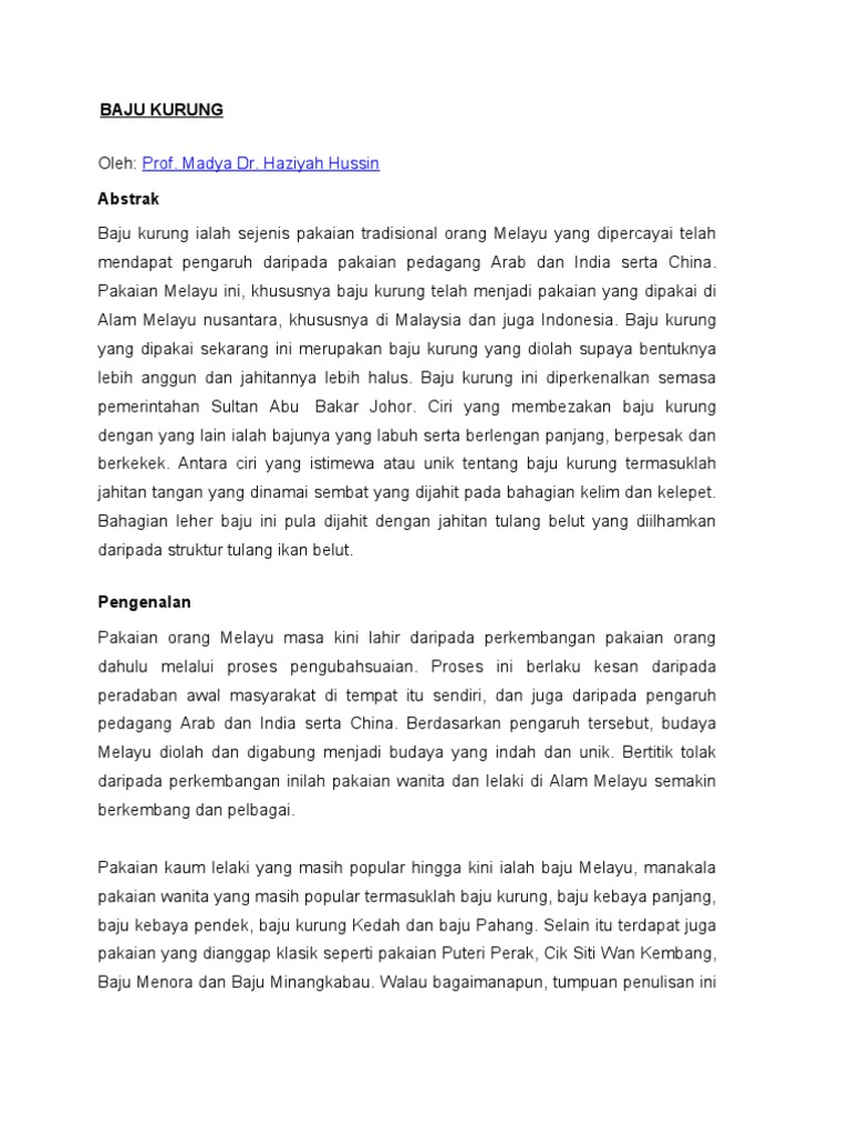Pdf Refleksi Islam Dalam Pakaian Tradisional Melayu Baju Kurung