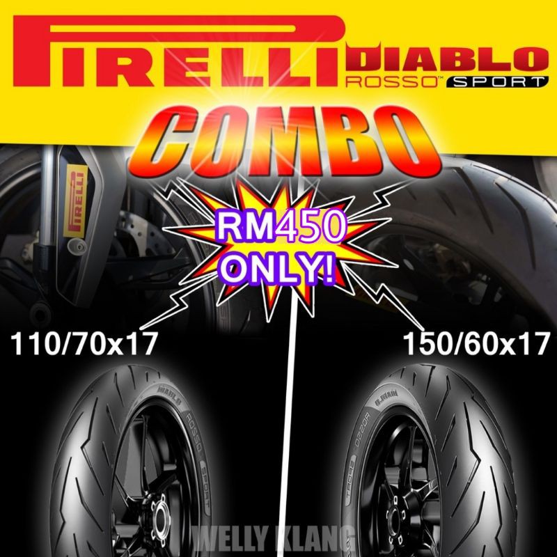 Combo Pirelli Diablo Rosso Sport 110 70x17 150 60x17 Tyre Tayar Ninja 250 Kawasaki Z250 Yamaha R25 Honda Cbr250 Naza Blade Benelli Lazada