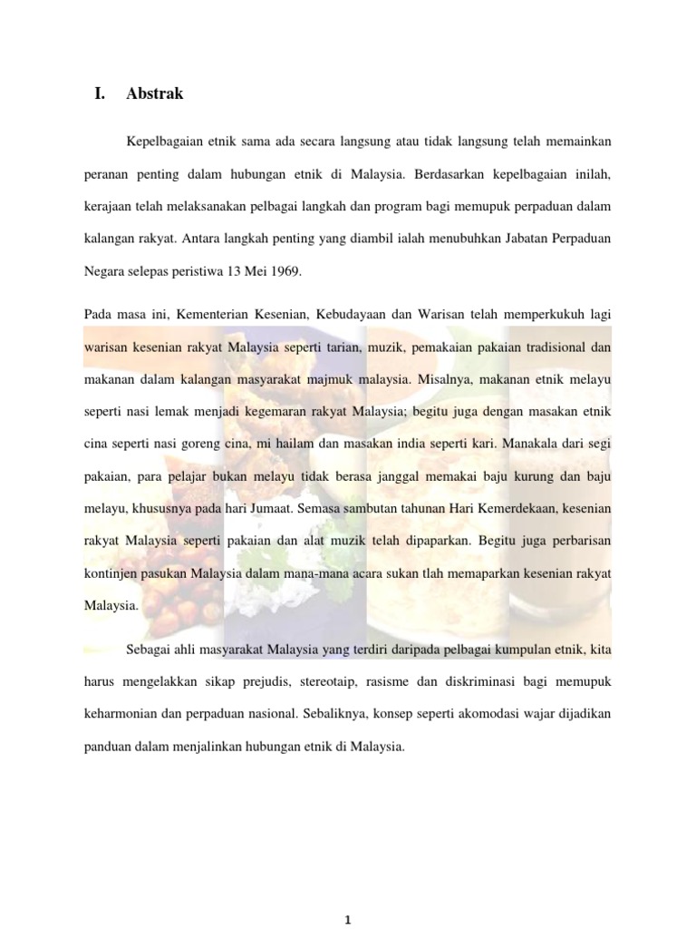 Kajian Mengenai Hubungan Etnik Dan Makanan