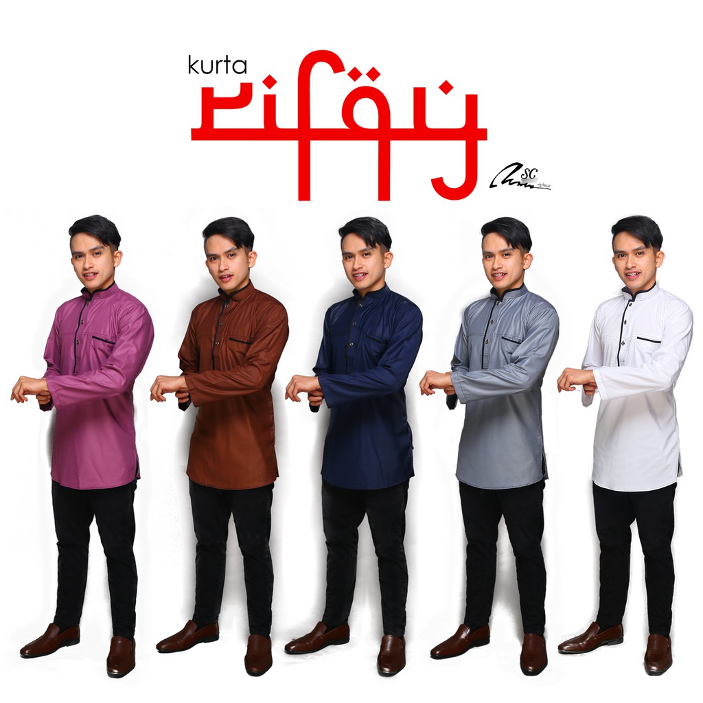 Kurta Rifqy Baju Moden Slim Fit Blouse Lelaki Dewasa Dusty Pink Brown Grey Putih White Shopee Singapore