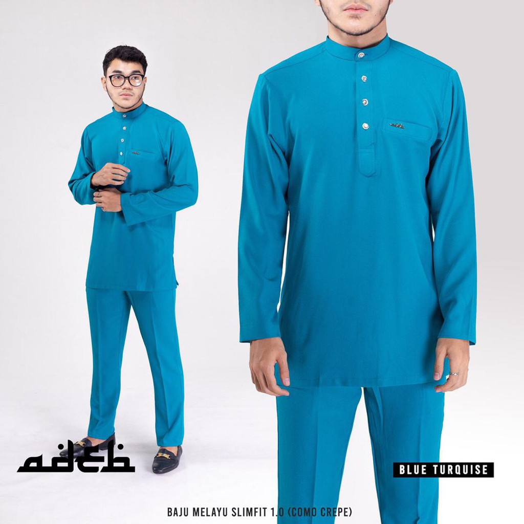 Baju Melayu Moden Slim Fit Blue Turquoise Shopee Singapore