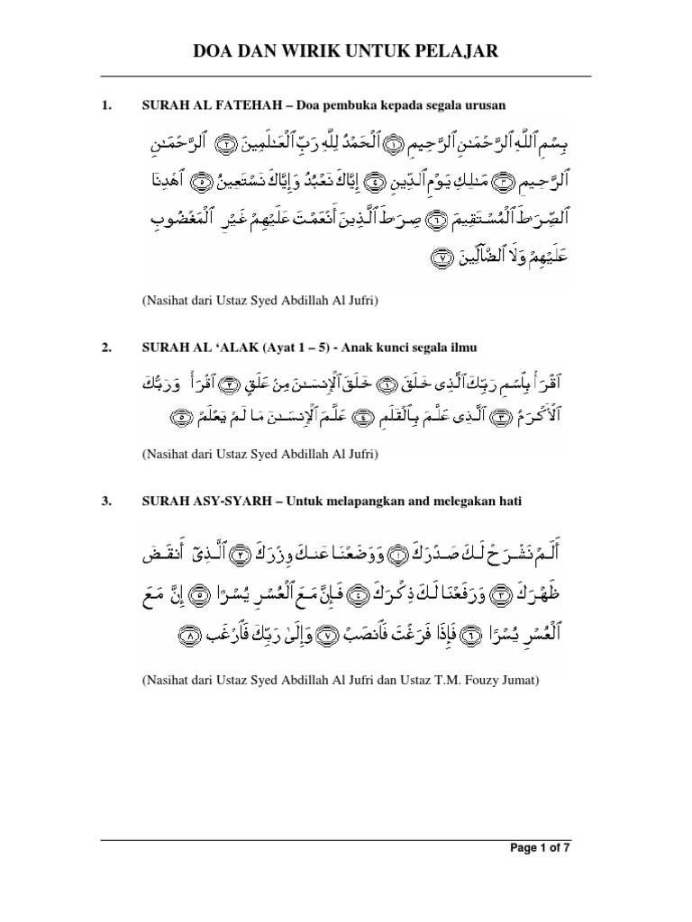 Al Quran Pusat Ilmu Doa Doa Untuk Pelajar Cemerlang