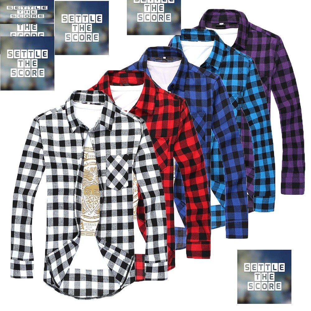 K12 Baju Kemeja Lelaki Corak Petak Square Plaid Long Sleeved Shirt Men Dcp288823 Dopcip