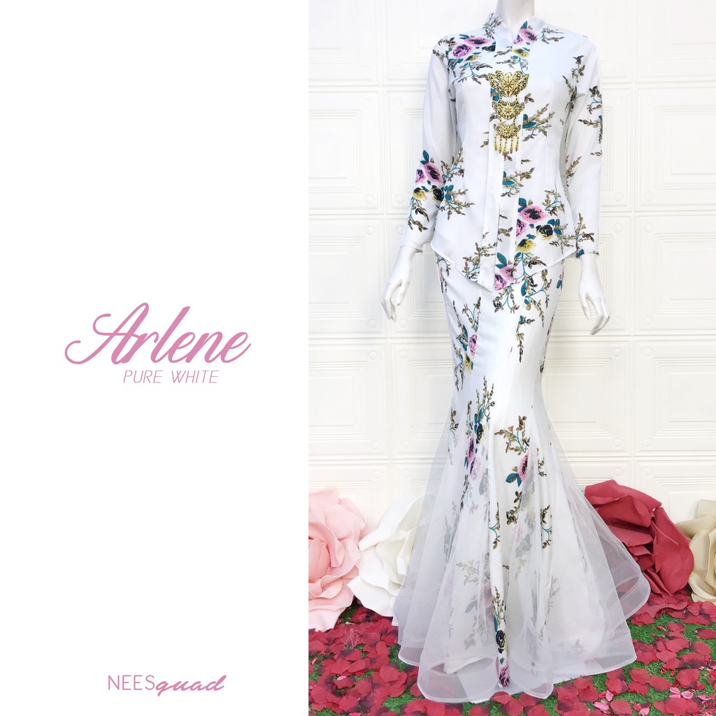 Last Stock White L Xl Arlene Baju Kurung Kebaya Printed Corak Bunga Muslimah Shopee Malaysia