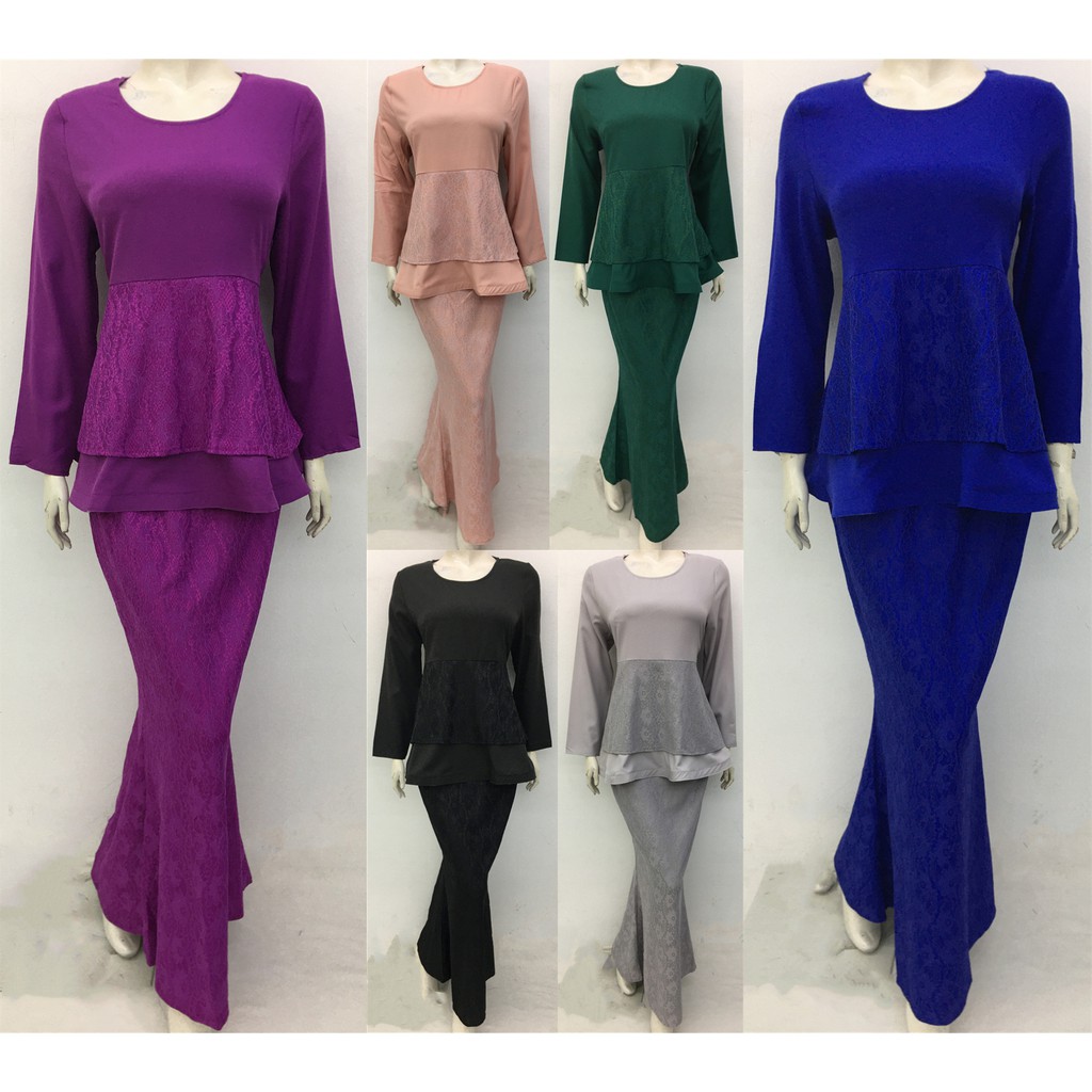 Vivfashionhouse Baju Kurung Moden Saloma Dan Kain Duyung Full Lace Size 38 48 Lazada