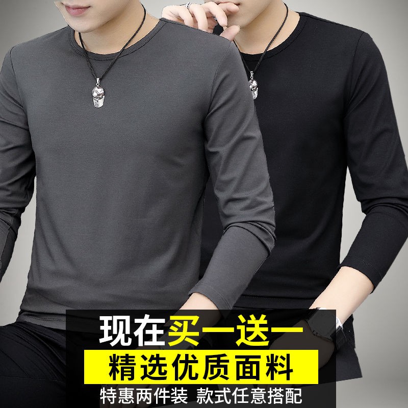 Two Pieces T Shirt Lengan Panjang Leher Bulat Lelaki Dan Musim Luruh Trend Langsing Warna Pepejal T Shirt Baju Musim Luruh Baju Bawah Shopee Malaysia