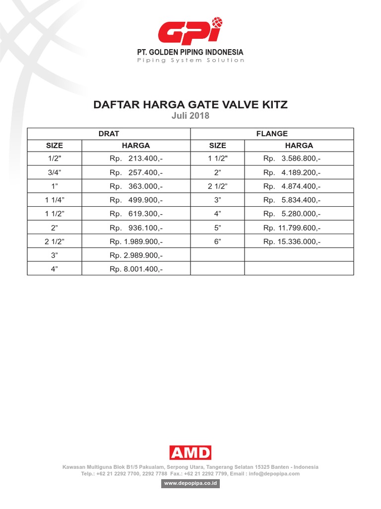 Gpi Price List Kitz Gate Valve Juli 2018