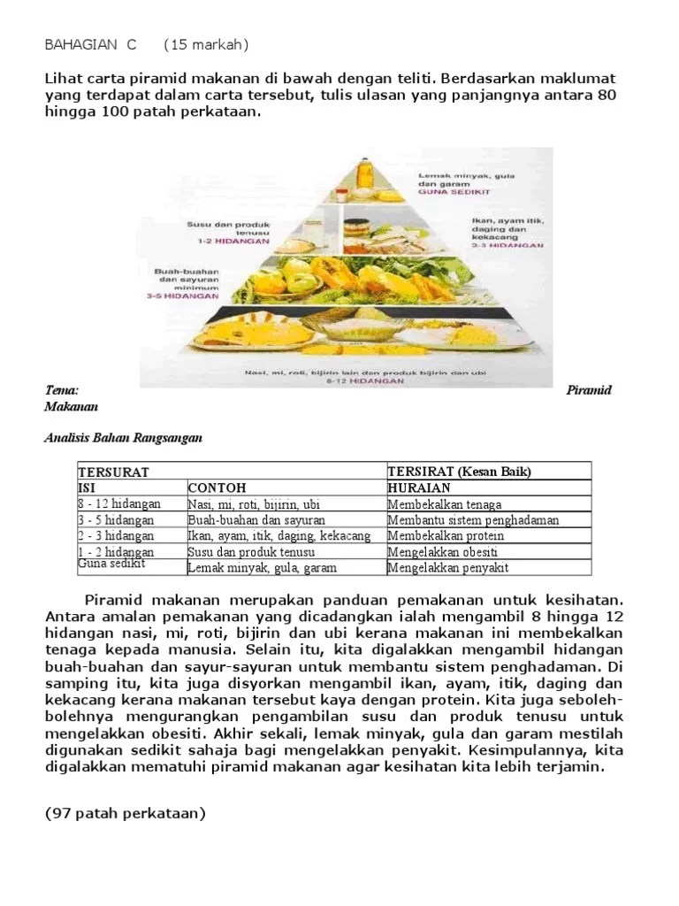 Contoh Ulasan Karangan Piramid Makanan Pt3 Bahasa Melayu