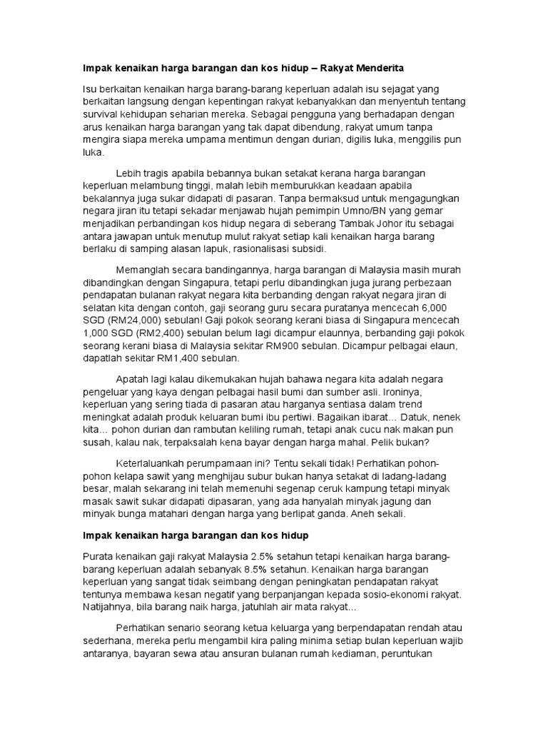 Impak Kenaikan Harga Barangan Dan Kos Hidup Rakyat Menderita
