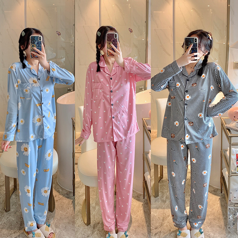 Hotexy Borong Baju Tidur Wanita Women S Pyjamas Plus Size Long Sleeve Pajamas Loose Sleepwear Autumn Cute Casual Home Wear Set Shopee Malaysia