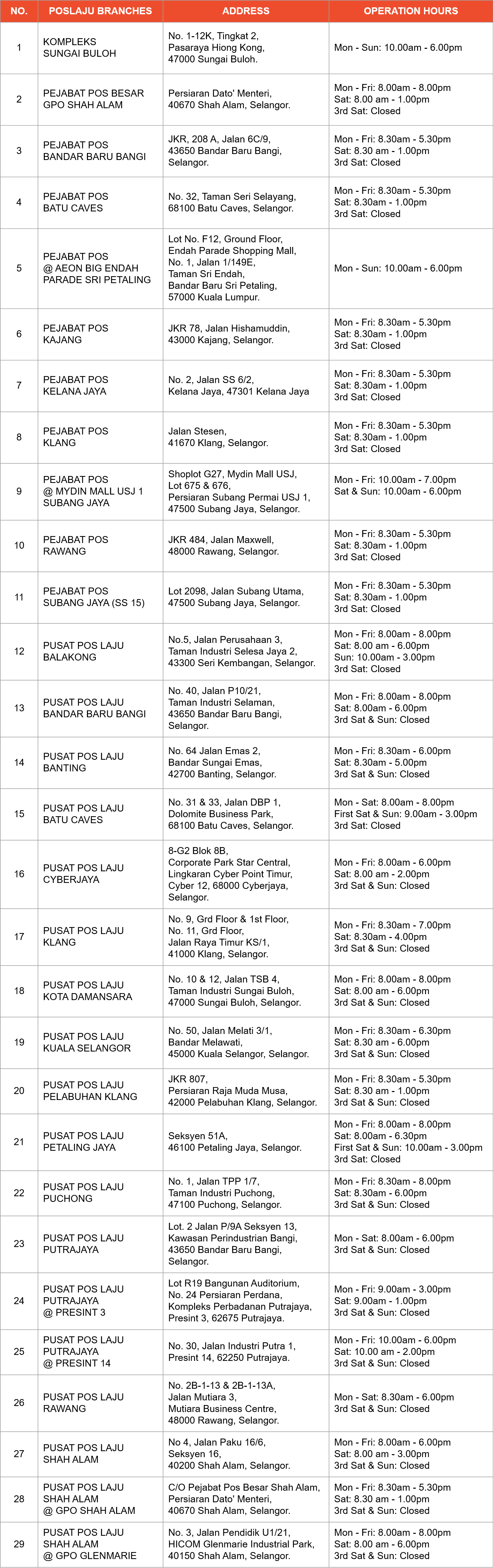 Senarai Pejabat Pos Di Kuala Lumpur