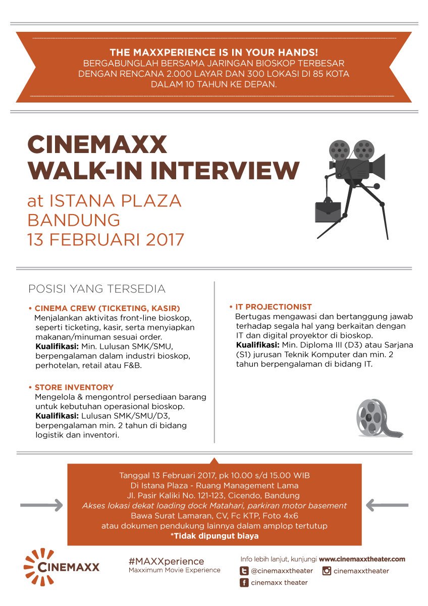 Cinepolis Indonesia On Twitter Besok Jangan Lupa Datang Ke Walk In Interview Di Istana Plaza Bandung Jam 10 Pagi Ya Jadilah Bagian Dari Keluarga Besar Cinemaxx Https T Co Biqjglj7i8