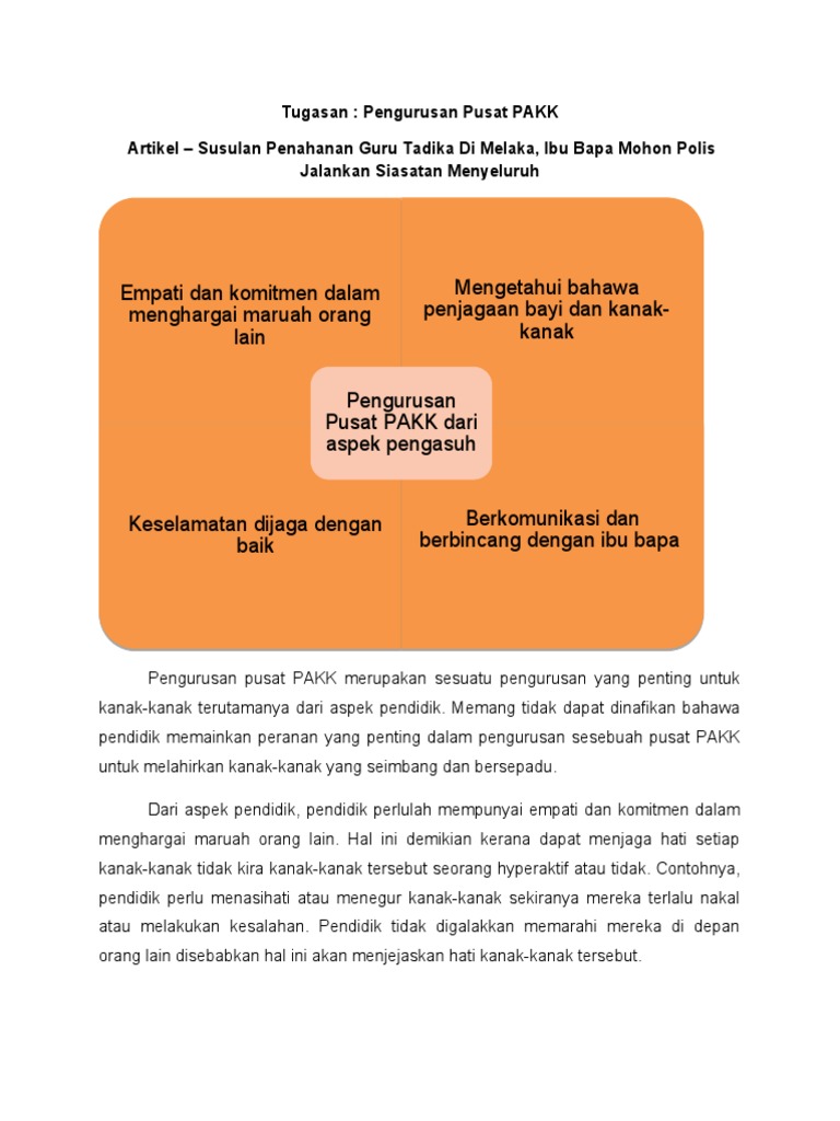 Tugasan Pengurusan Pusat Pakk Artikel Susulan Penahanan Guru Tadika Di Melaka Ibu Bapa Mohon Polis Jalankan Siasatan Menyeluruh
