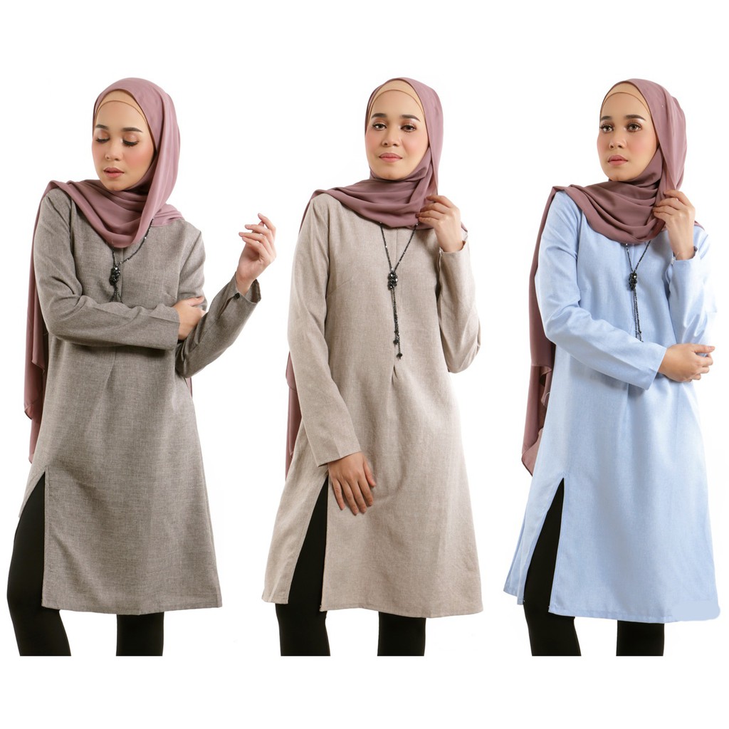 Jf Fashion Women Abelie Front Slit Long Tunic F390 Blouse Cantik Blouse Tunic Blouse Muslimah Blouse Murah Shopee Singapore
