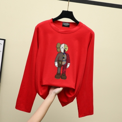 Kaws Long Sleeve T Shirt Ready Stock Korean Women Casual Loose Tops Baju Lengan Panjang Pemborong Baju Kaws 211184