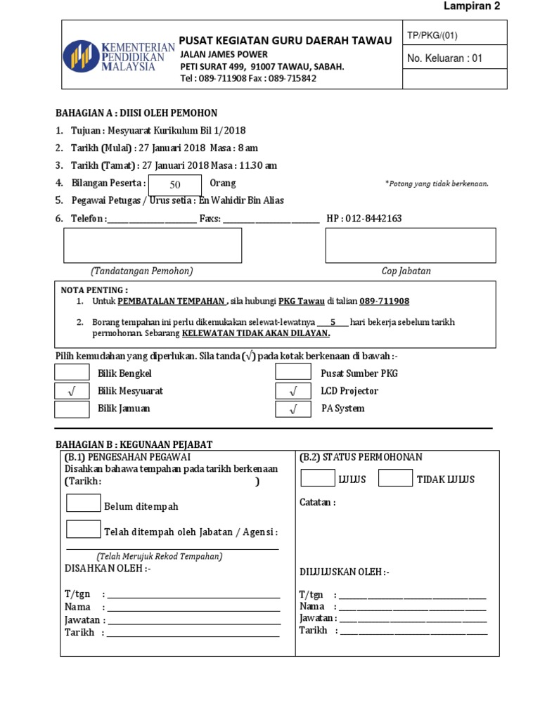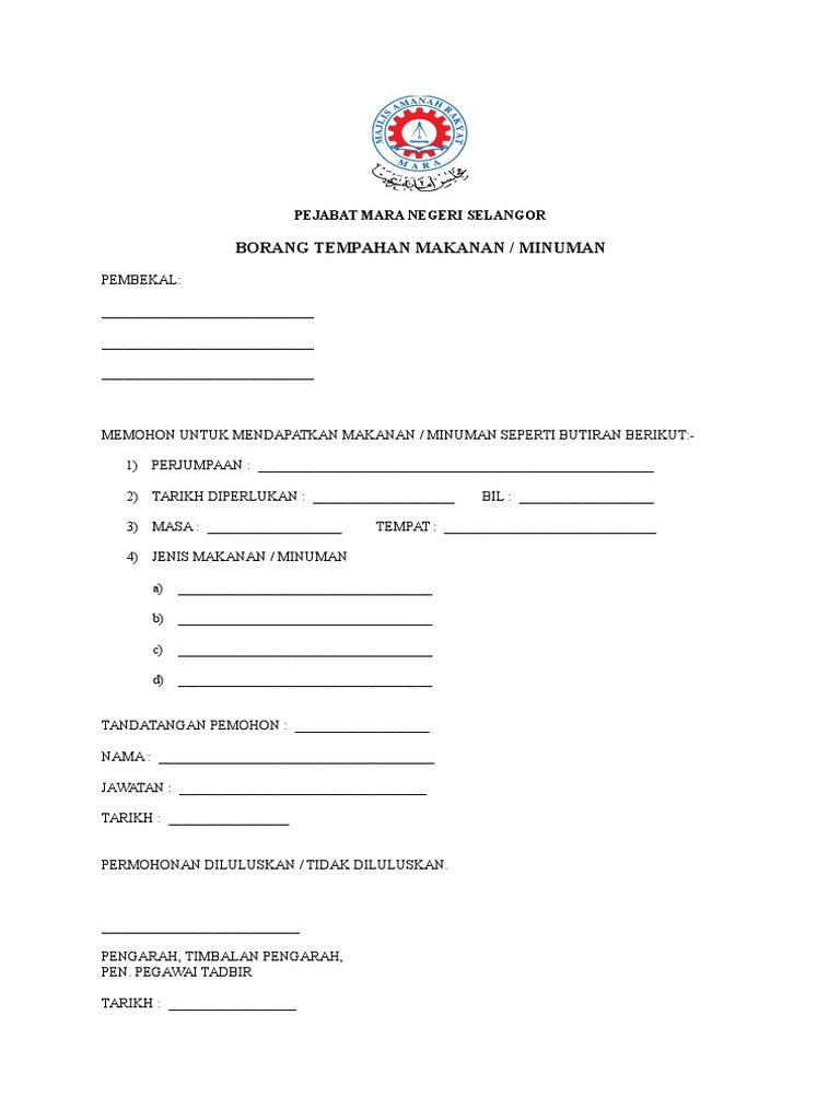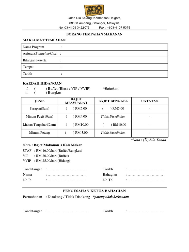 Contoh Borang Tempahan Makanan Untuk Mesyuarat