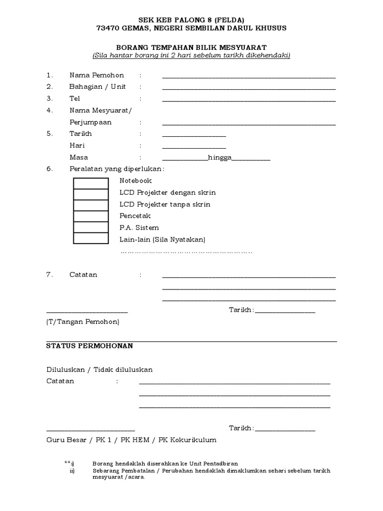 Borang Tempahan Bilik Mesyuarat Page 1 Line 17qq Com