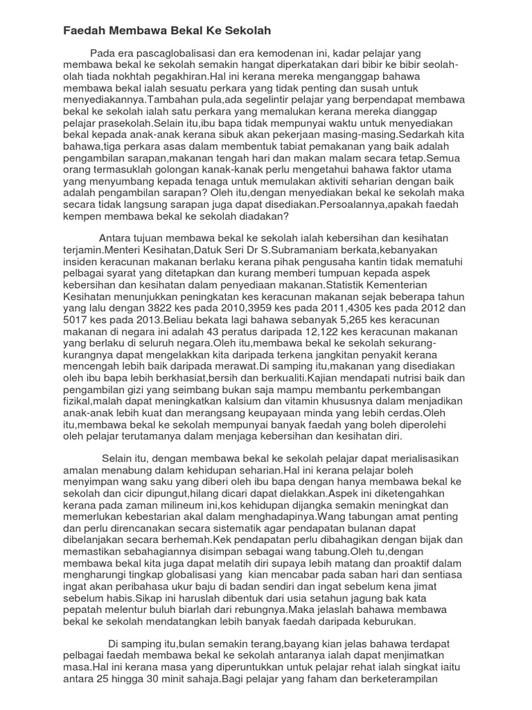 Karangan Spm Kesan Membawa Bekal Makanan Ke Sekolah