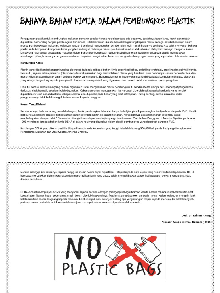 Bahaya Bahan Kimia Dalam Pembungkus Plastik