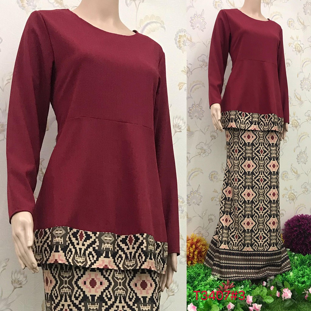 Nayla Z Clothes Kurung Cotton Strechable Plain Top Batik Design Long Sleeve Shirt T3407 Shopee Singapore