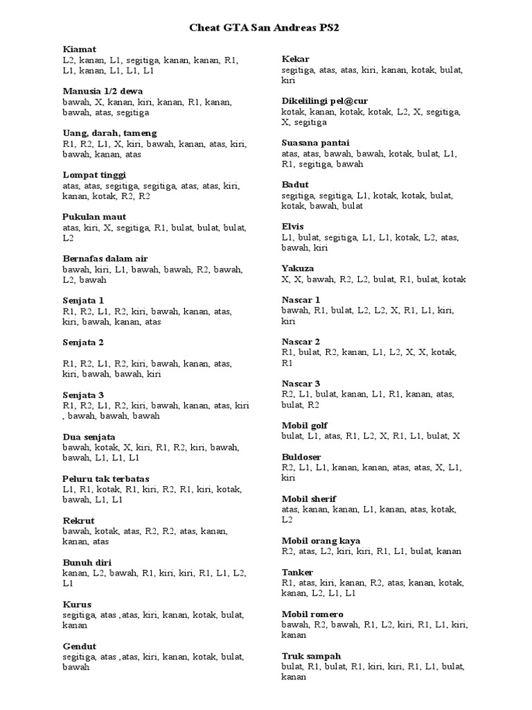 Belajar Segala Trik Cheat Gta San Andreas Ps2 Terlengkap