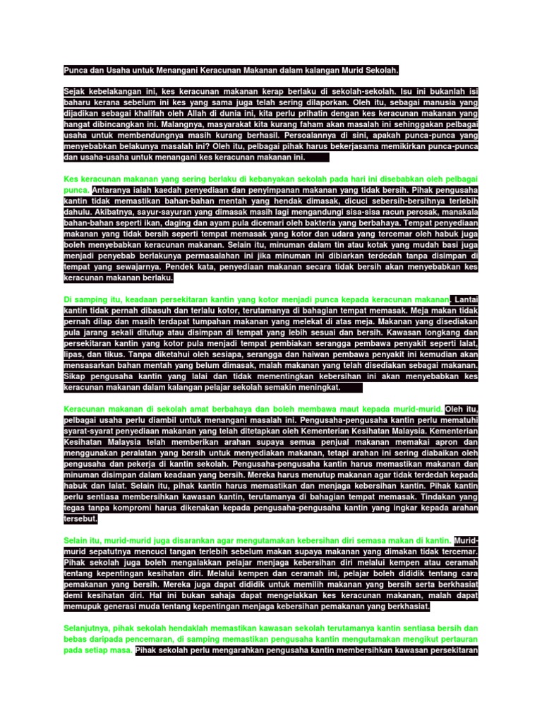 Karangan Tentang Kes Keracunan Makanan Di Sekolah