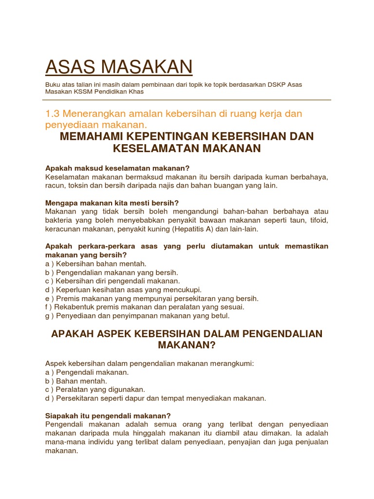 Kepentingan Kebersihan Dalam Penyediaan Makanan