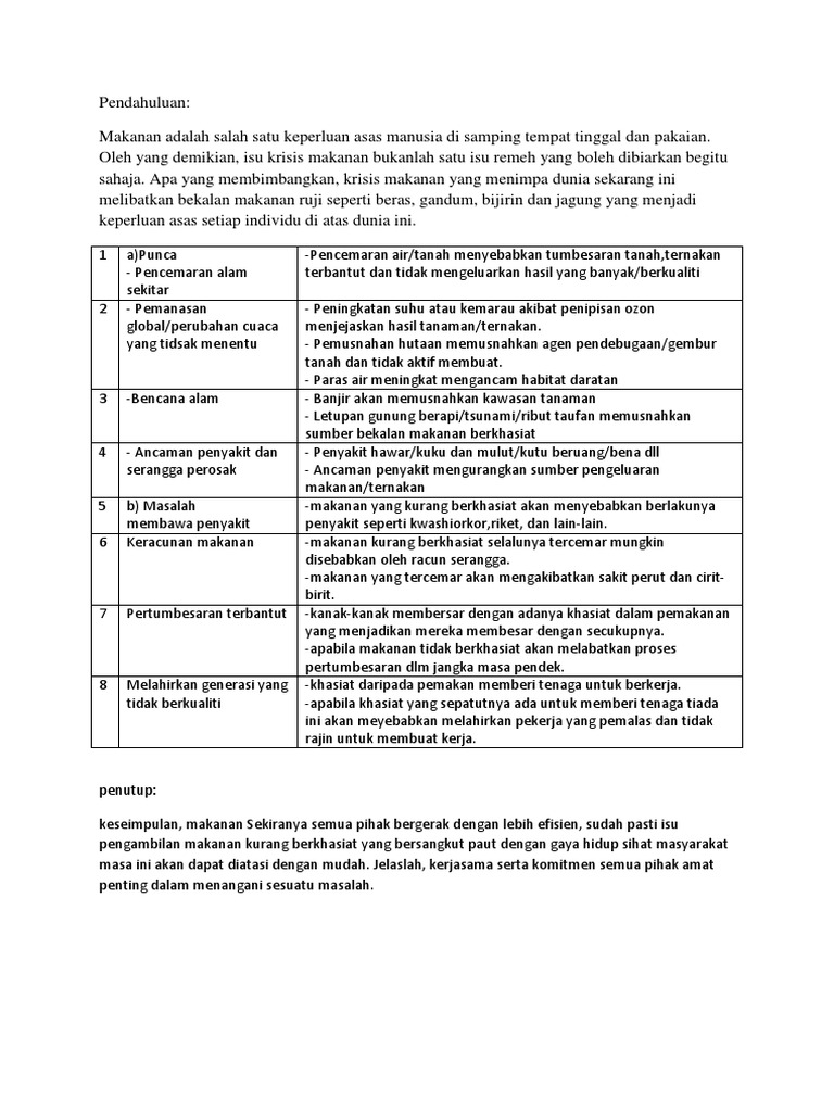 Faktor Berlakunya Krisis Makanan Di Sesebuah Negara